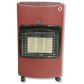 Der rote NIKLAS Nova Fashion Infrarot-Gasofen bietet dank seiner 4200-W-Leistung und drei Keramikbrennern eine Heizleistung von 120 m³.